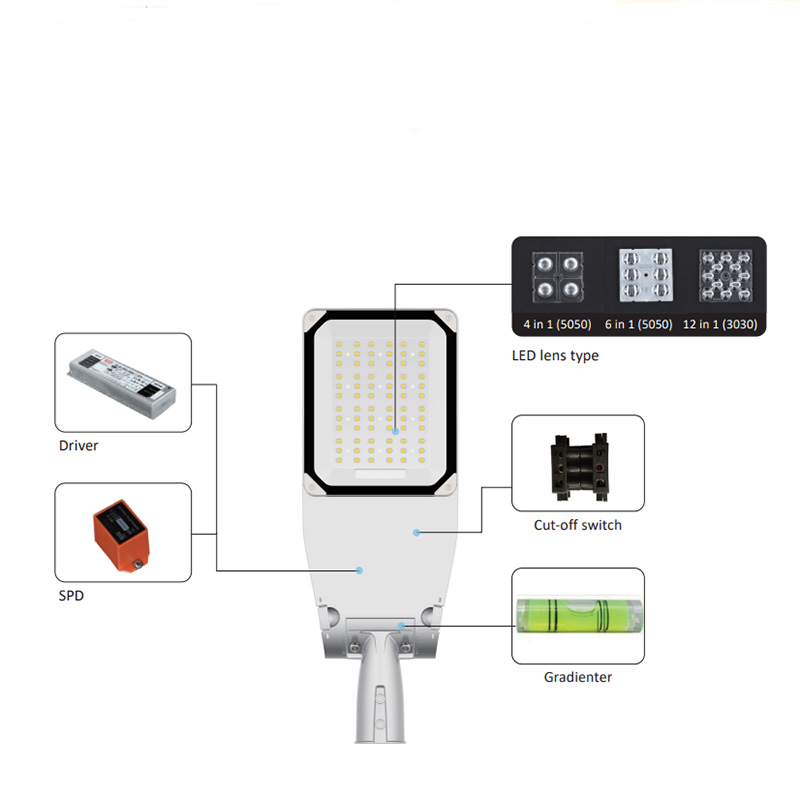- Corpul din aluminiu este fabricat din aluminiu turnat sub presiune ADC12, suprafața tratată prin vopsire prin pulverizare pentru a preveni coroziunea și persistența culorii.