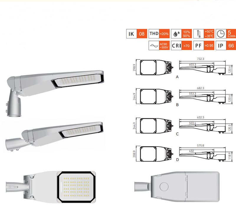 5 ani garanție pentru iluminat stradal cu LED-uri de 50w, 80w, 100w, 150w, 240w, rezistent la apă IP66, 3000k, 6000k, pentru oraș