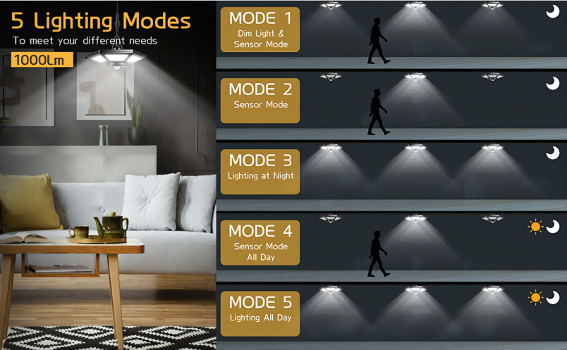 Poate oferi iluminare chiar și în timpul zilei. Mod de control fără lumină Puteți alege cu ușurință diferite moduri și luminozitate pentru a satisface cerințele dumneavoastră.