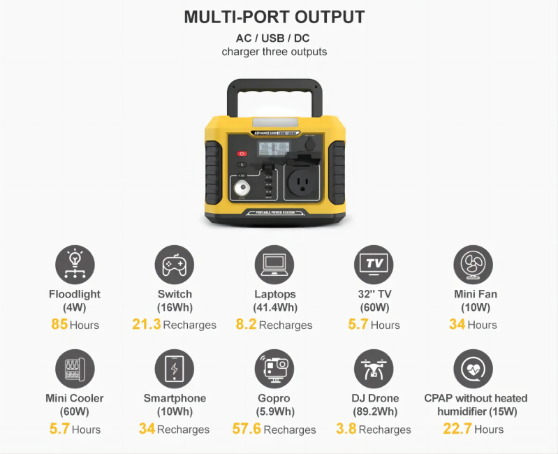 Stație electrică portabilă cu baterie litiu, capacitate mare de stocare, 500W